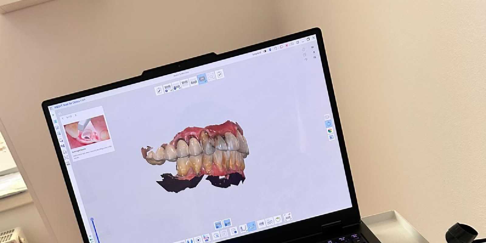 Folosește un dispozitiv de mână pentru a crea modele 3D precise ale dinților și gingiilor. Datele obținute sunt transmise electronic către laboratorul de tehnică dentară, unde sunt utilizate pentru proiectarea și realizarea lucrărilor protetice (coroane, fațete, punți, gutiere etc.). Medicul poate analiza modelul digital, stabili detaliile finale și valida lucrarea înainte de execuție. Odată finalizată, lucrarea este livrată în cabinet pentru probă și fixare, asigurând o potrivire precisă, un confort sporit pentru pacient și un timp de tratament redus.